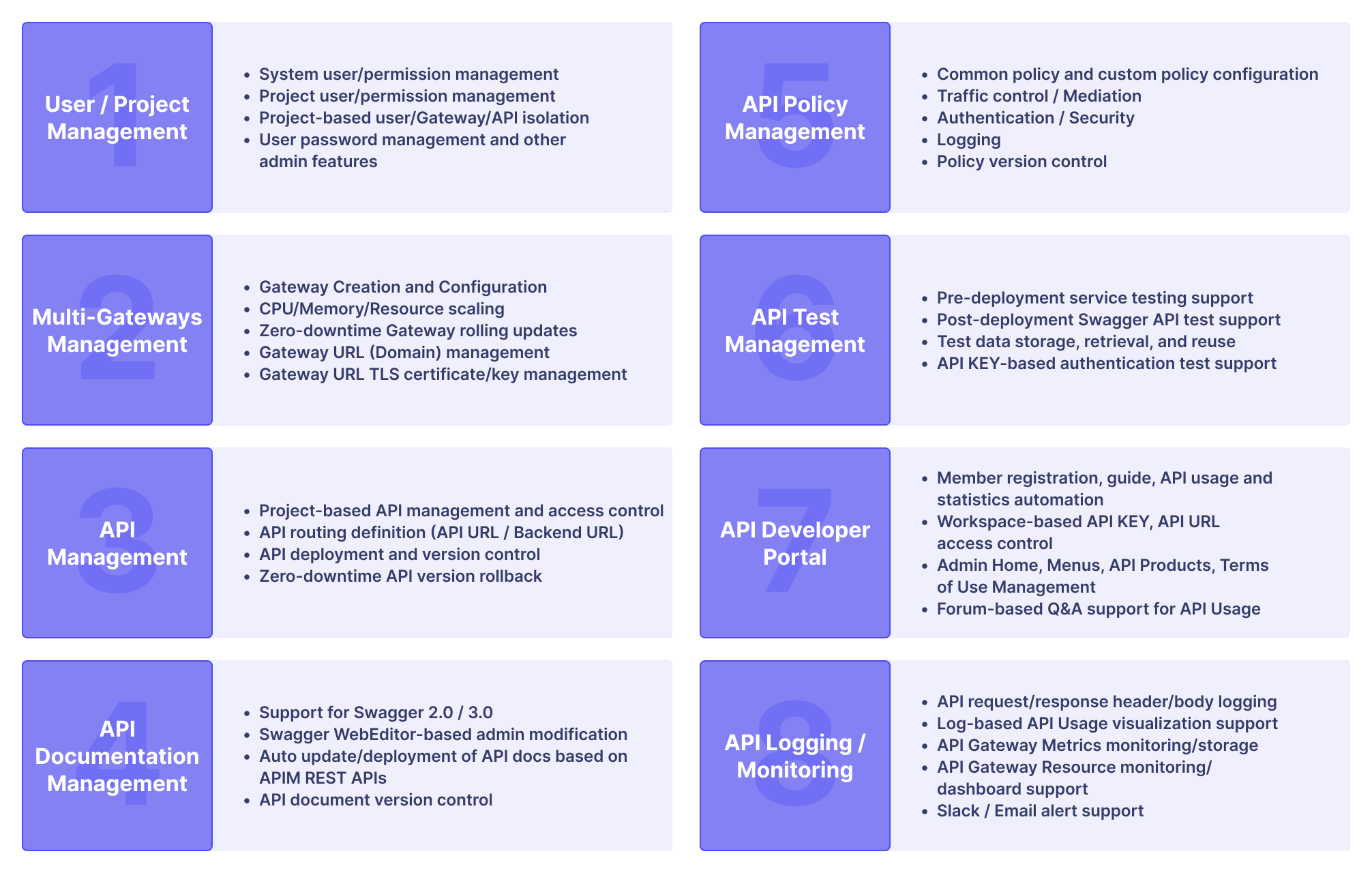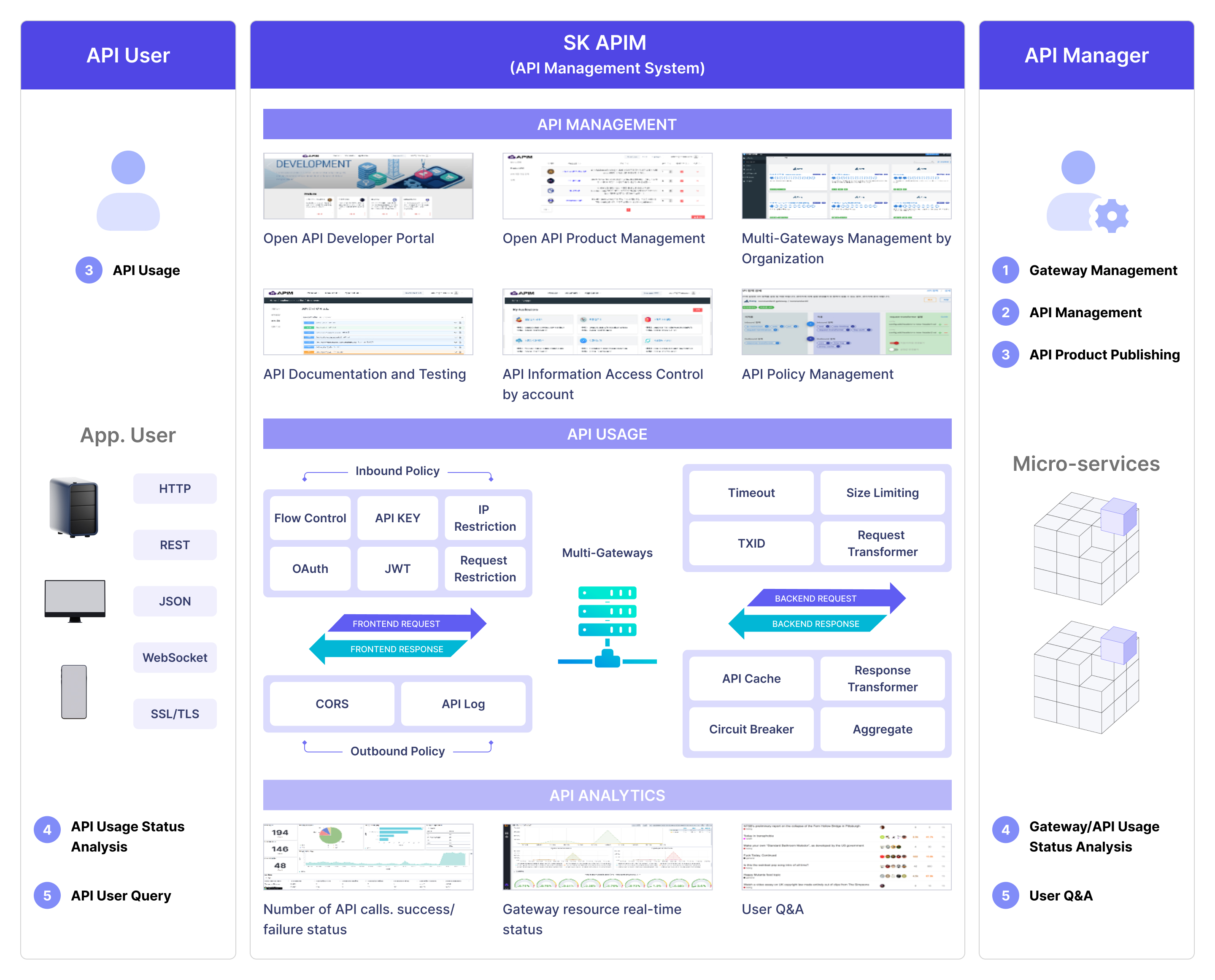 - Open API Support for Business Growth: 외부 파트너에게 공개 API의 통제된 노출을 가능하게 하여 서비스 범위를 확장하고 혁신을 가속화합니다.