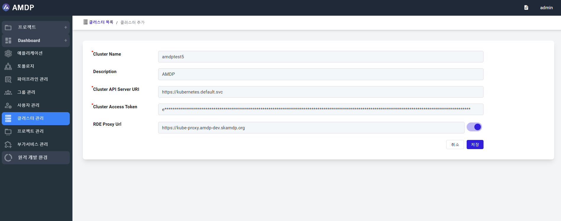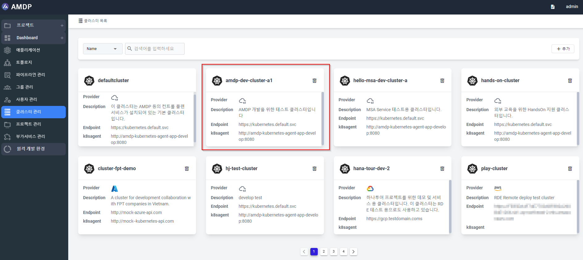 AMDP hỗ trợ môi trường đa cụm. Bạn phải đăng ký một cụm sau khi cài đặt ban đầu. Cụm được đăng ký đầu tiên nên được đặt tên là cụm mặc định. Sau khi đăng ký, tên và thông tin URI của AMDP's Kubernetes Agent không thể được sửa đổi.